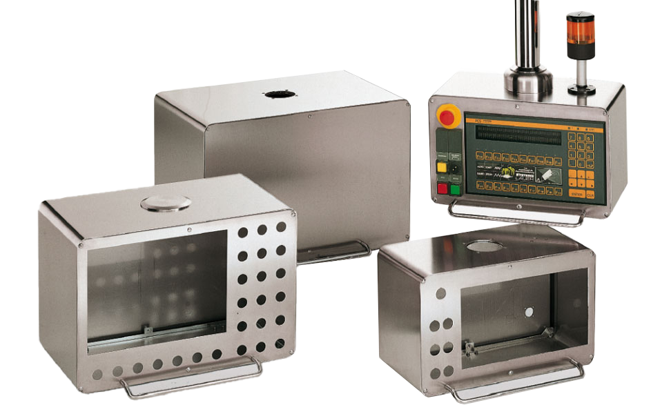 System bestehend aus satinierten Rohren aus Edelstahl AISI 304, gebogen in "S-", "J-" und "L-Form", oder aus geraden Stücken sowie gebogenen und/oder fixen Verbindungselementen, die dazu dienen Steuerkästen und Steuerboxen zu tragen ohne hierbei den Schutzgrad des Gehäuses (bis max. IP66) zu verändern.
