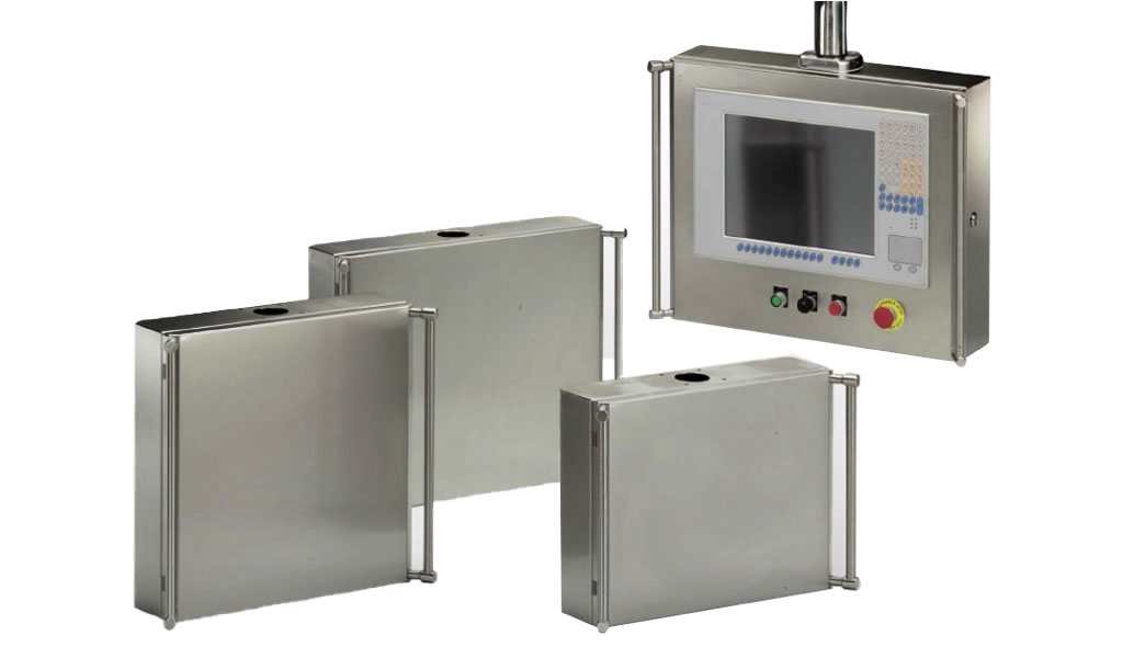 Neue Serie von Boxen in denen Steuereinrichtungen oder lnterfaceterminals untergebracht werden können. Dank ihrem innovativen Design und Hightechausrüstung sind diese Boxen für eine weitgefächerte Auswahl von Displays geeignet. Die Boxen BK sind für die Anbringung von Gelenkverbindungen vorgerüstet oder können mit ergonomischen Griffen geliefert werden. Die Boxen bestehen aus fein satiniertem Edelstahl AISI 304 - 1.4301. Schutzgrad IP66 und Türöffnung von 120° entsprechend den Normen CEI EN 60204-1.