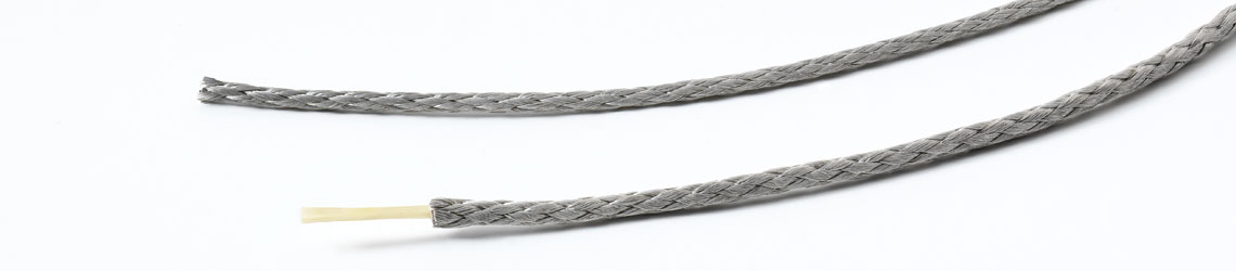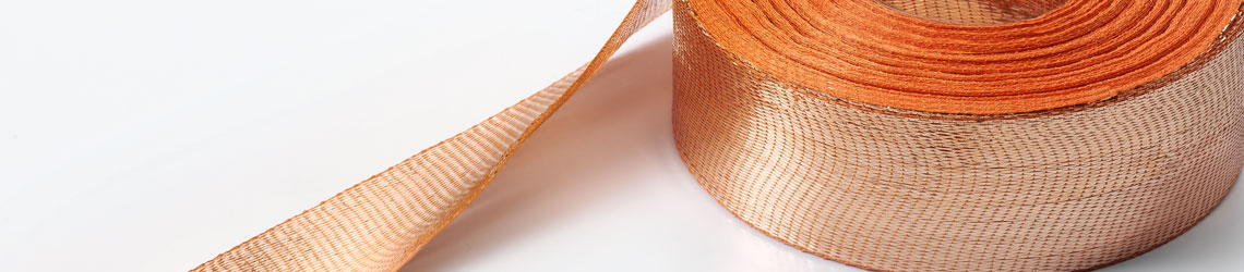 • Einfache oder doppelte Kupfergespinste (mit ein oder zwei Kupferflachdrähte umsponnener Textil-Trägerfaden)