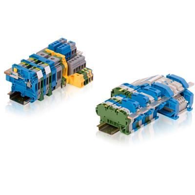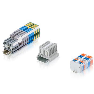 - Funktionen: einfache oder mit Dioden, Widerständen, Überspannungsableiter oder LED-Anzeigen ausgestattete Reihenklemmen